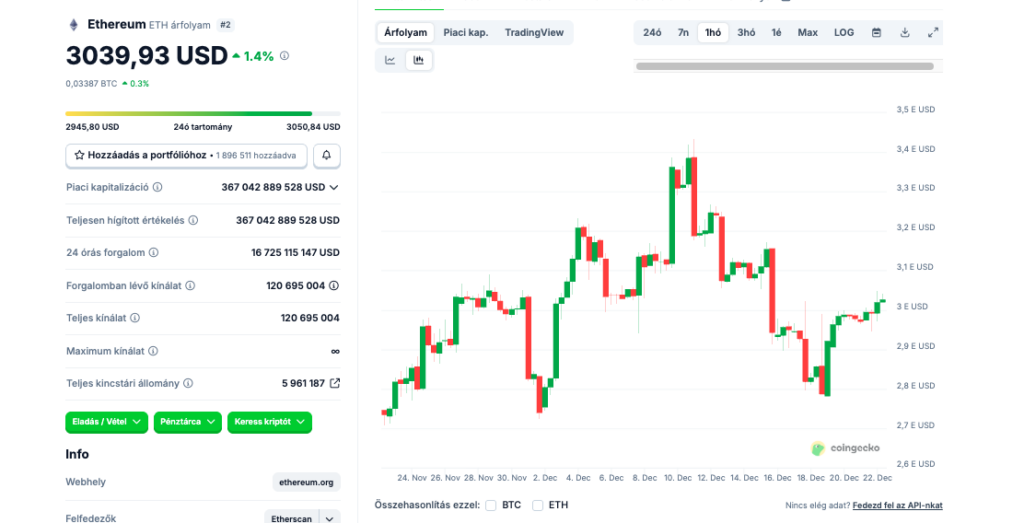 3. Ethereum (ETH) — Az okosszerződések gerince a Fusaka után