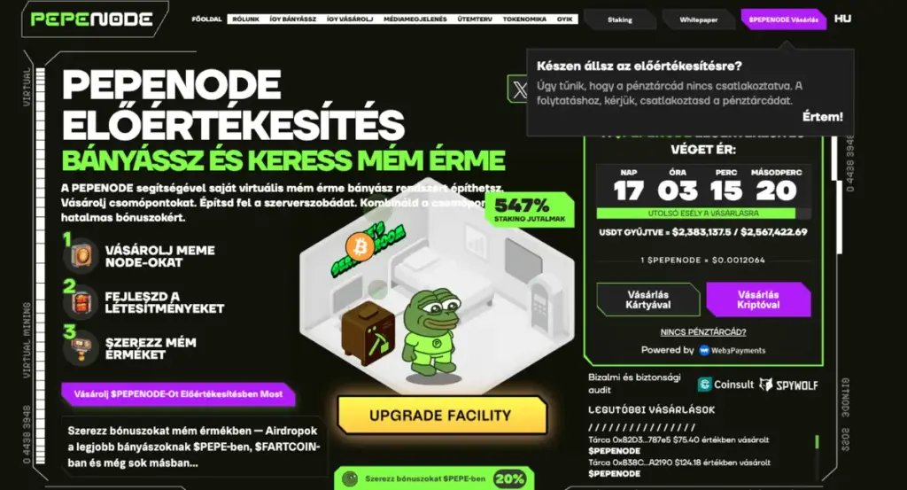 2. PEPENODE ($PEPENODE) — A világ első mine-to-earn memecoinja