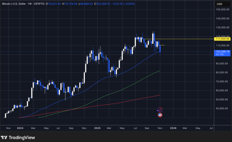 A bitcoin heti grafikonja szerint az eszköz fontos támaszszintet tesztel az év egyik legmeredekebb visszahúzódása után.