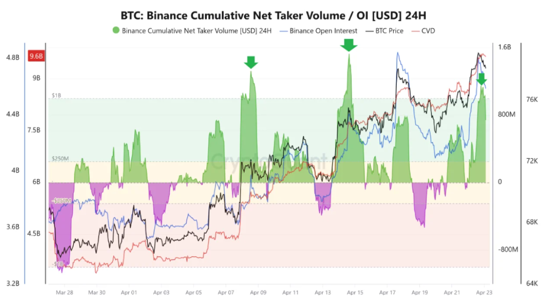 A Binance adatai szerint a nettó taker volumen ebben a hónapban már harmadszor lépte át az 1 milliárd dollárt.