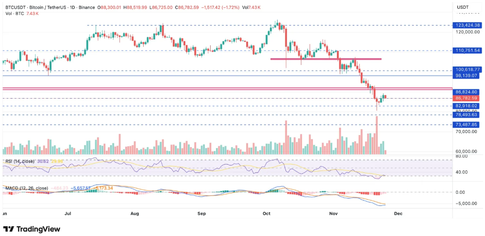 A Bitcoin 90.000 alatt gyengélkedik: fennáll az újabb alacsonyabb csúcs veszélye