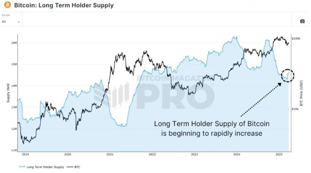 A hosszú távú tartók kínálatát bemutató fenti grafikon azt mutatja, hogy az arány újra növekedésnek indult.