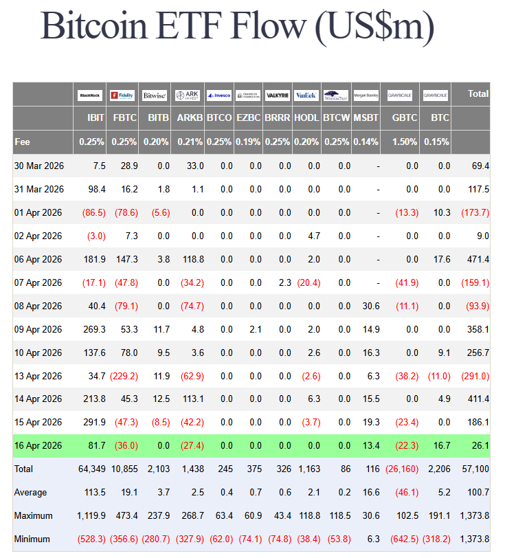 A Morgan Stanley sztorija a normalizálódásról szól. A bank spot Bitcoin Trust alapja, az MSBT április 8-án indult 0,14%-os díjjal, és az első nap 34 millió dolláros beáramlással startolt, amit Bloomberg ETF-elemzők a „minden legjobb ETF-indulásainak a felső 1%-ába” soroltak.