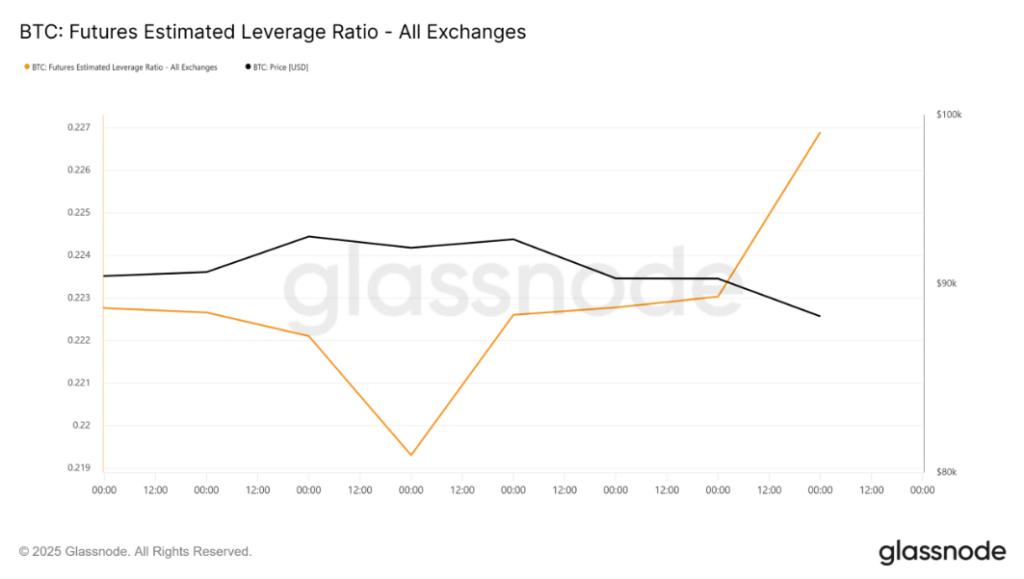 A Glassnode adatai szerint a Bitcoin becsült tőkeáttételi rátája ismét emelkedésnek indult, megközelítve a 0,22-es szintet.