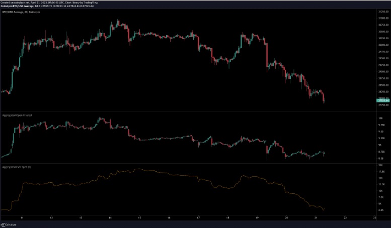 Gyorsan és többször kilőtték őket, ahogy a piac az elmúlt 24 órában lejjebb ment. A spot CVD is lefelé tartó trendben maradt, ami aláhúzza a BTC mögött álló intenzív eladási nyomást.
