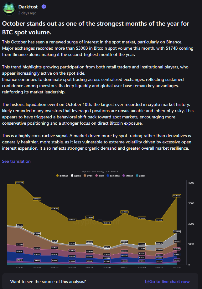 A kereskedők az október 10-i masszív tőkeáttételes likvidálások után inkább a biztonságosabb spot piacra tértek át.