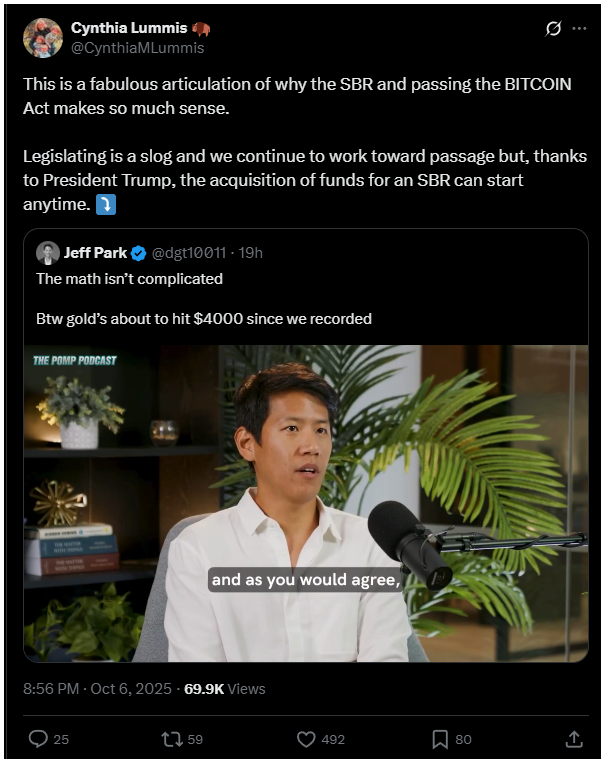 A lendületet Cynthia Lummis szenátor kijelentése indította el, miszerint a tartalék „bármikor elindulhat”, amit sokan a kormányzati szintű Bitcoin-elfogadás első komoly lépésének tartanak.