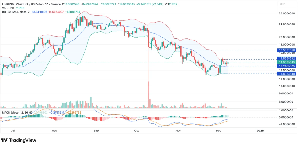 Chainlink (LINK) technikai helyzete: erős védelem, szűkülő ármozgás