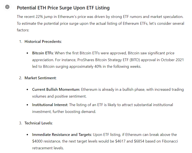 Ennélfogva megkértem a ChatGPT-t, hogy jósolja meg az ETH árát az Ethereum ETF indulása előtt.