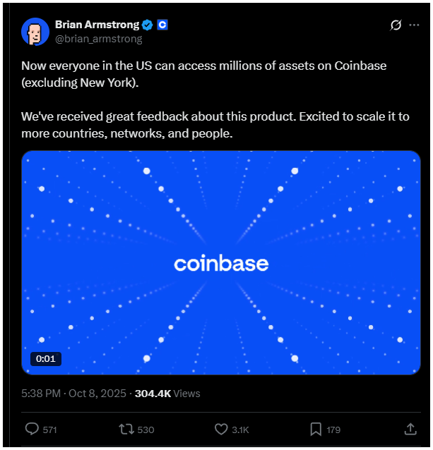 Az eredmény? Amerikai felhasználók milliónyi tokennel kereskedhetnek azonnal, kivéve New York államot.