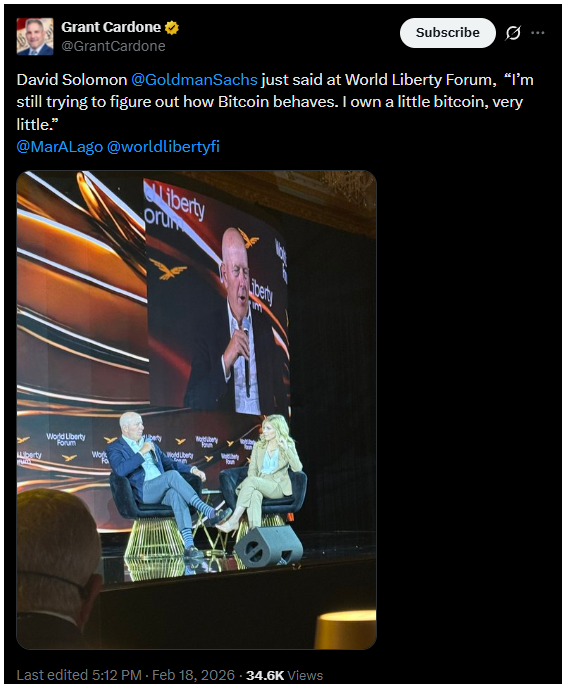 A Goldman Sachs vezérigazgatója, David Solomon elmondta, hogy személyesen is birtokol egy kevés bitcoint.