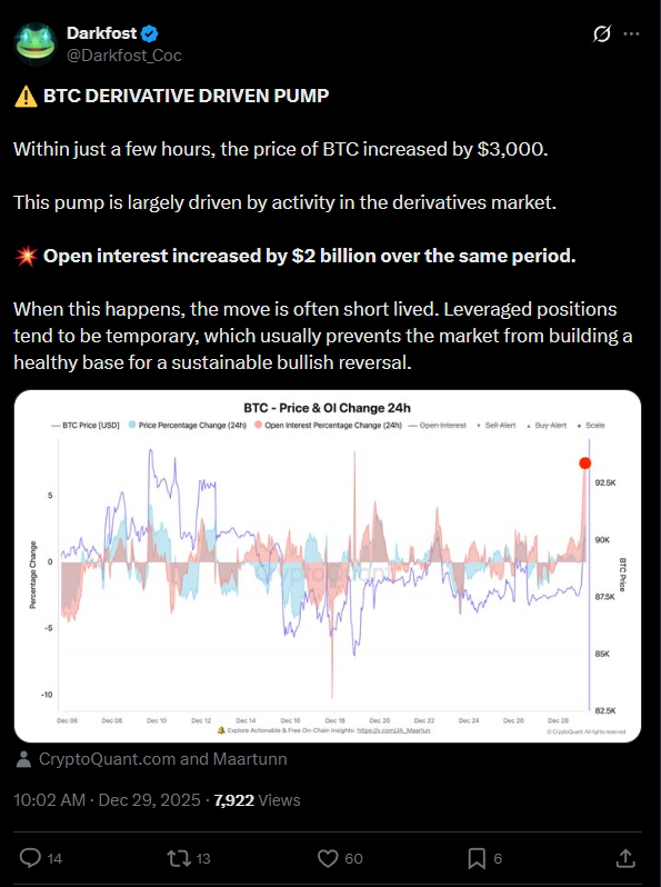 Darkfost szerint ezt a kisebb emelkedést főként a derivatív piac aktivitása okozta, mivel a nyitott pozíciók értéke ugyanezen időszak alatt 2 milliárd dollárral nőtt.