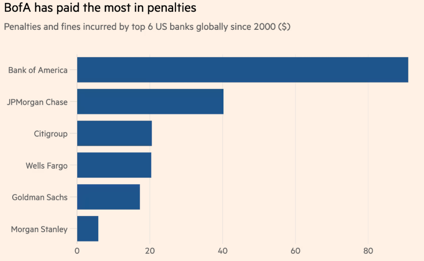 Az amerikai bankok azonban az elmúlt húsz évben több mint 200 milliárd dollárnyi bírságot fizettek a megfelelési hibák miatt, a Better Markets és a Financial Times adatai szerint.