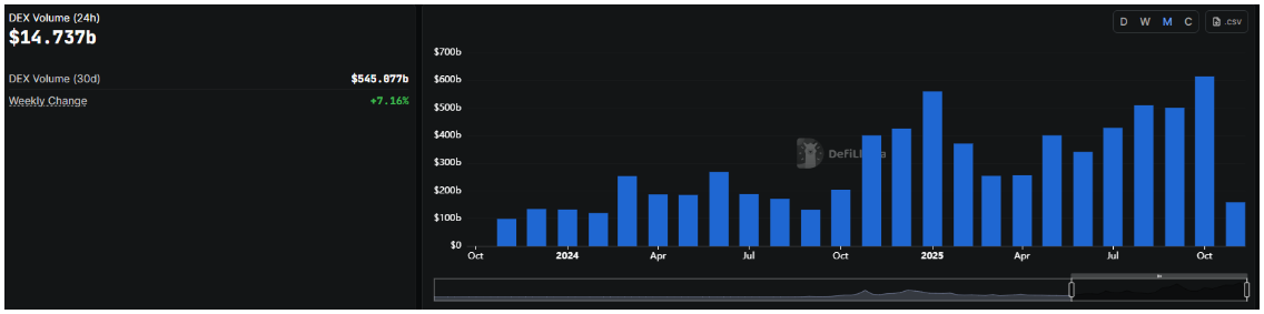 Az októberi nagy likvidálási hullám több piacot is megbénított, de a központosított tőzsdék csendben gyűjtötték be a mozgó tőkét, bálnák, rövid távú spekulánsok, és stabilcoin-váltók egyaránt odatömörültek.