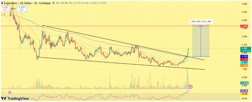 Ennek ellenére a vevők határozottan átvették az irányítást, és a ZRO árfolyama magabiztosan áttörte a 2 dolláros szintet.