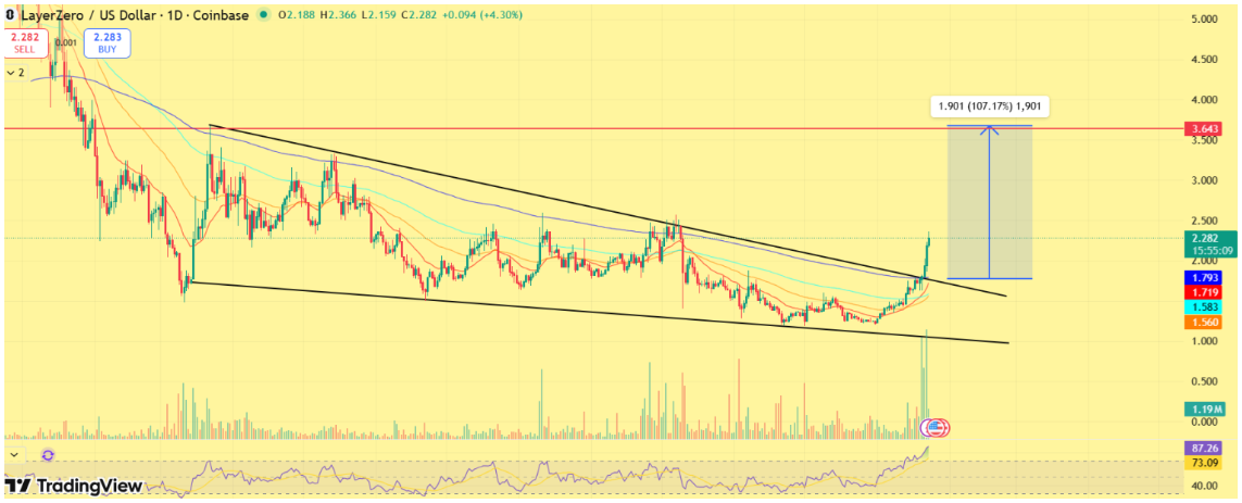 Ennek ellenére a vevők határozottan átvették az irányítást, és a ZRO árfolyama magabiztosan áttörte a 2 dolláros szintet.