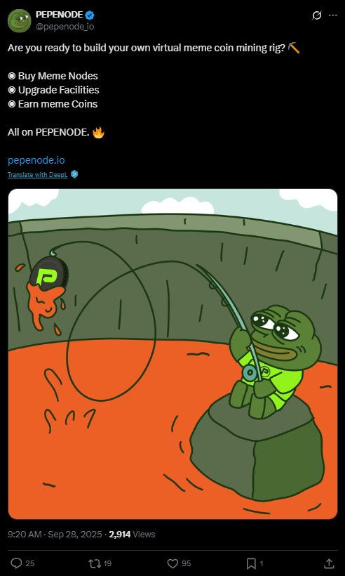 A Pepenode egy jelenleg előértékesítési fázisban lévő mémcoin projekt, amely bevezet egy játékosított „mine-to-earn” rendszert.