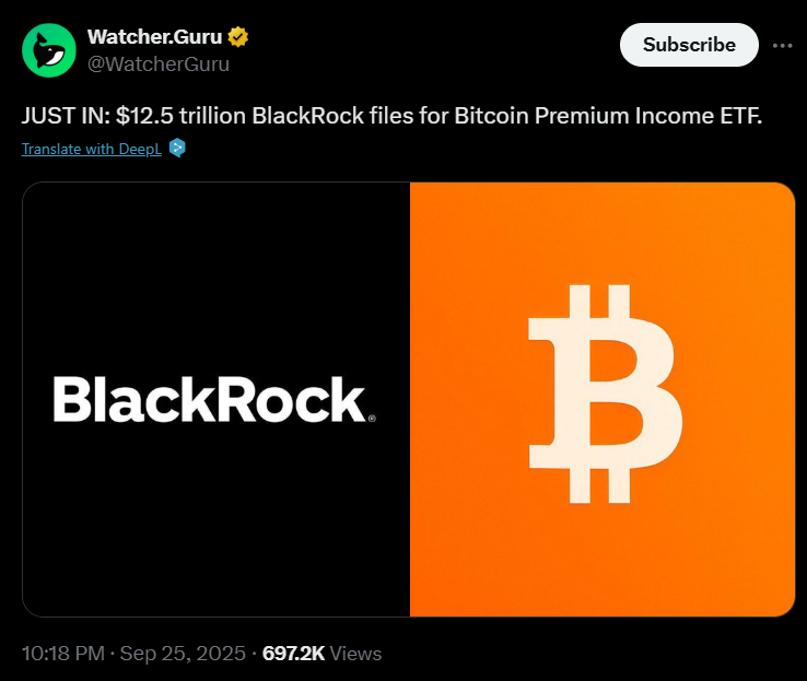 Az intézményi befektetők is felettébb aktívak. A Watcher.Guru egyik friss posztja szerint a BlackRock továbbra is vásárol Bitcoint, és elindította a Bitcoin Premium Income ETF-et, amely az árfolyamnyereség mellett rendszeresen kínál hozamot.