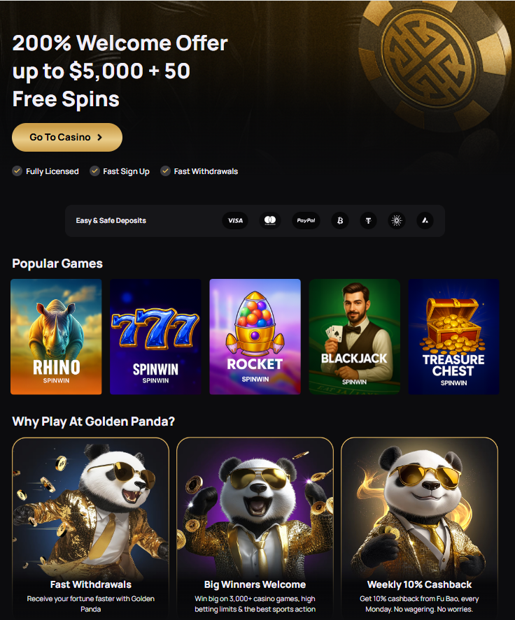 A Golden Panda az Instant Casino-hoz hasonlóan 2024-ben indult, és több mint 3 000 online és élő játékot kínál, a nyerőgépektől egészen a pókerig.