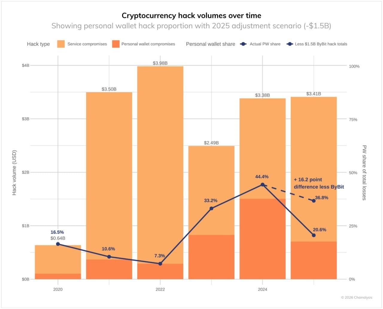 A 2025 eleji Bybit-hack az idei elveszett pénzek felét tette ki. Érdekes módon a személyes tárcák feltörése, például a Trust Wallet esetében, az elmúlt három évben jelentősen megnőtt – áll a jelentésben.