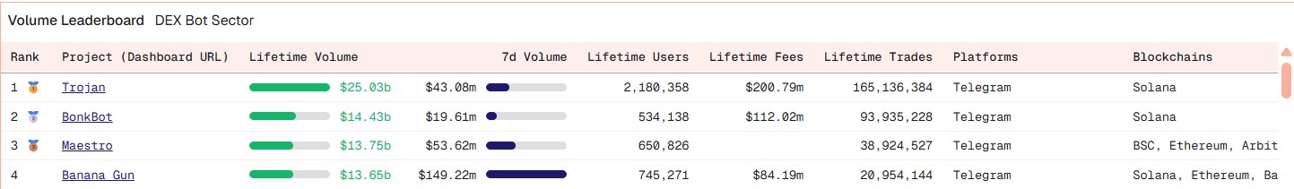 A Solana-alapú botok, mint a Trojan és a Bonk Bot, előnyt élveznek a gyors blokkvéglegesítés és a több ezer tranzakció miatt.