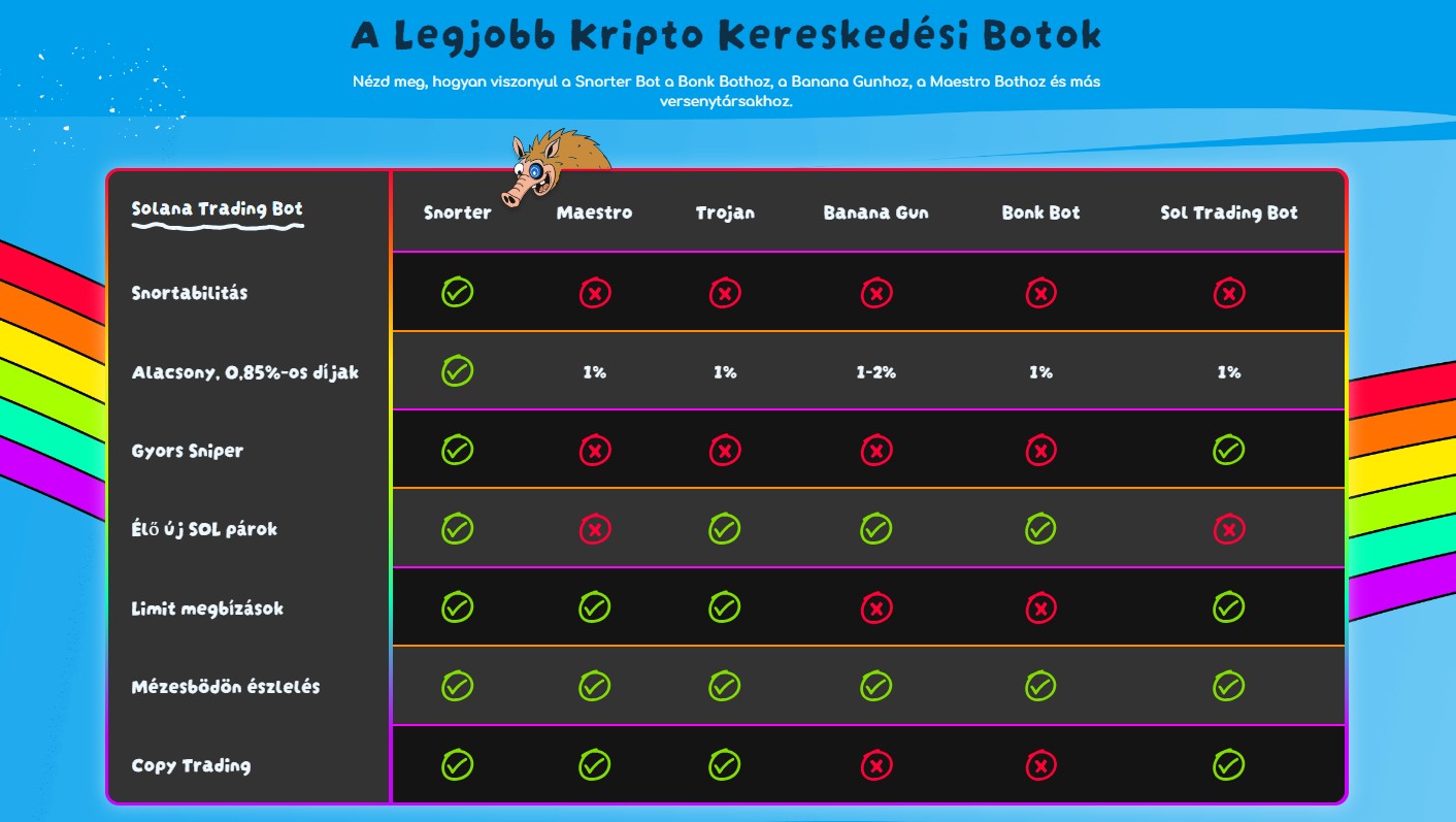 A Maestrohoz és a Banana Gunhoz képest a Snorter kiemelkedik azzal, hogy Solana-alapú. Mindkét bot Ethereumra épül, ahol az alapréteg korlátai – lassabb blokkok, alacsonyabb áteresztőképesség és gázdíjak – kevésbé hatékony működést eredményeznek.