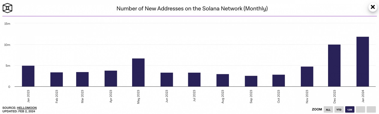 Az adatszolgáltató szerint a 31 napos időszak alatt a Solanán létrehozott új címek száma összesen 11,81 millió volt.