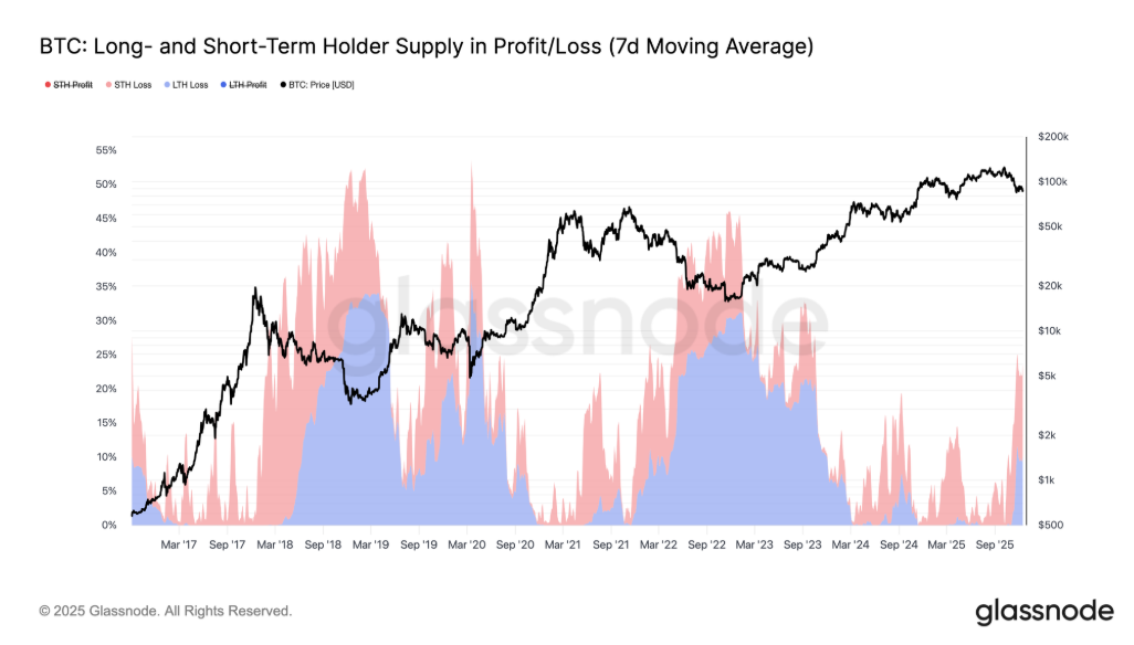 A blokklánc-adatok szerint érdekes átalakulás zajlik a Bitcoin piacán, a veszteségben lévő BTC-k egyre nagyobb része hosszú távú befektetők kezében landol.