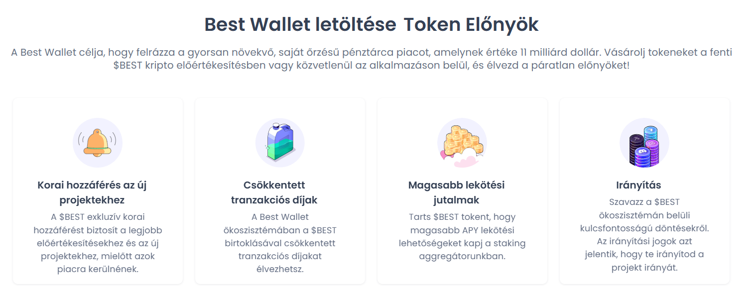 A $BEST Token szorosan kapcsolódik a tárca működéséhez. A birtoklása és lekötése számos előnnyel jár:
