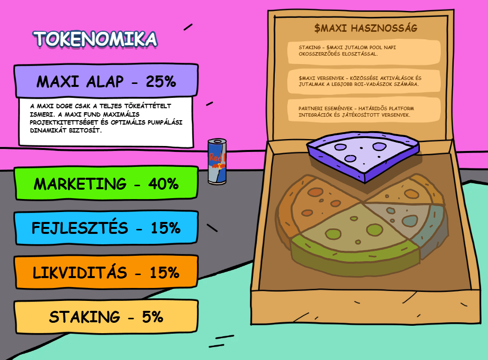A Maxi Doge is szeretne ebből részesedni. Ennek érdekében a tokenek 40%-át marketingre fordítják, hogy elterjedjen a hír, miszerint $MAXI a következő nagy kutya.