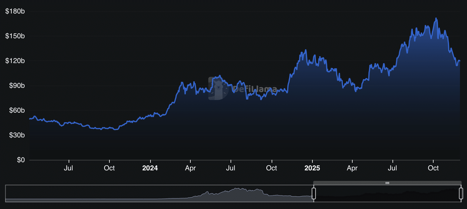 A piac ugyan visszakapaszkodott kicsit, a TVL jelenleg 119,09 milliárd dollár, de ez még inkább „óvatos remény”, mintsem erős visszarendeződés.