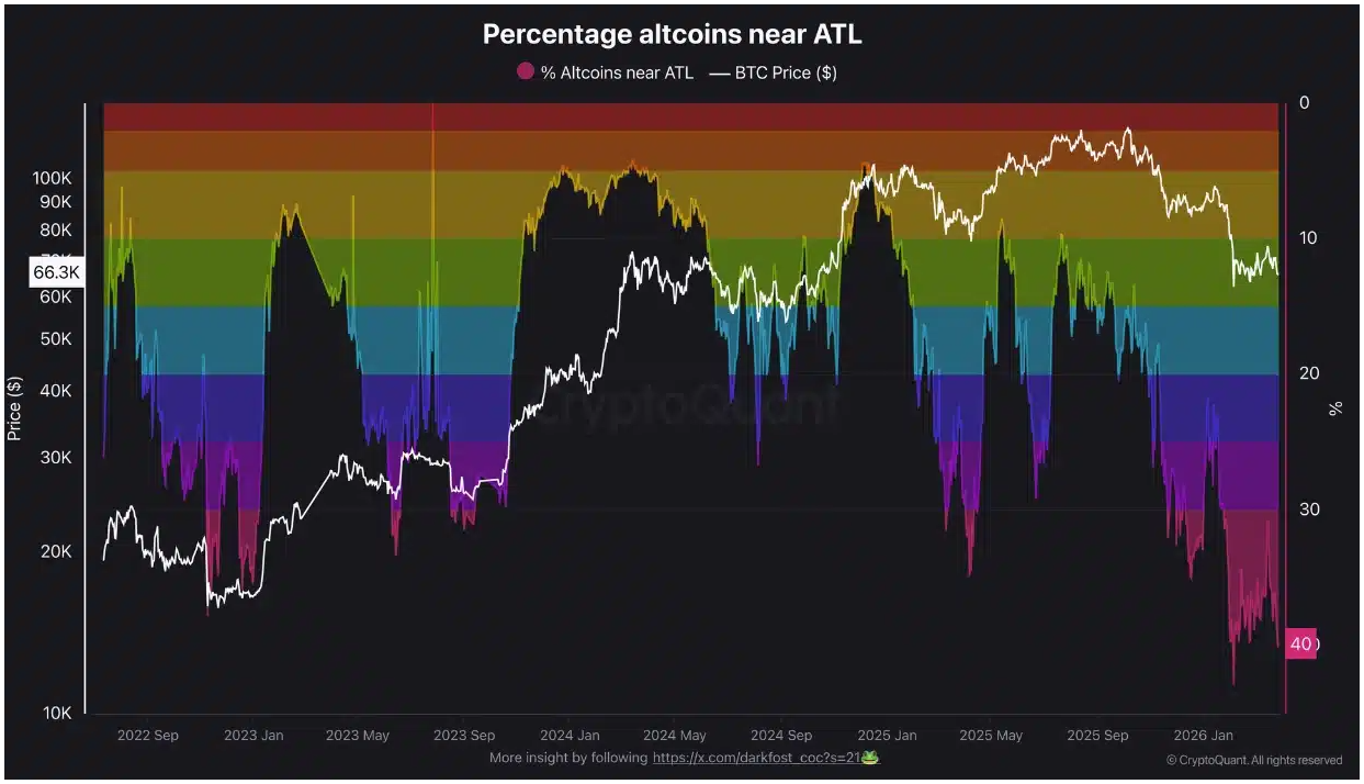 A legfrissebb adatok szerint az altcoinok közel 40%-a vagy már elérte a történelmi mélypontját, vagy nagyon közel került hozzá.