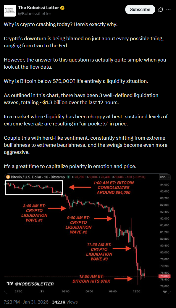 A The Kobeissi Letter szerint a mozgás mögött törékeny likviditási környezet állt.