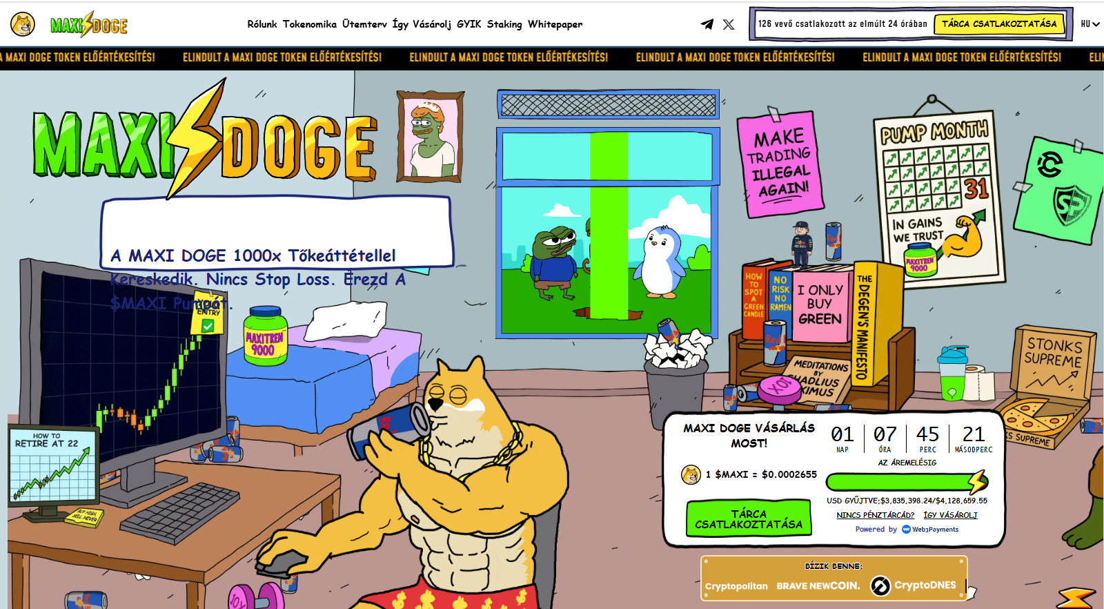 Ez nem csak egy újabb mémcoin – a $MAXI a „maximalista szemléletre” épül, szenvedélyes közösségi hozzáállást és virális marketinget ötvöz. A projekt egyenesen visszalopja a korai Dogecoin és Shiba Inu korszak hangulatát.