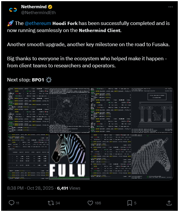 A héten az Ethereum-közösség újabb sikert könyvelhetett el: a Nethermind fejlesztőcsapata megerősítette, hogy a Fusaka-frissítés hiba nélkül elindult.