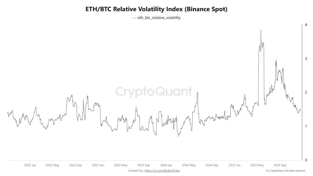 Bár az ETH még mindig ingadozóbb, mint a BTC, a különbség fokozatosan csökken. A befektetők egyelőre nem vállalnak nagyobb kockázatot.