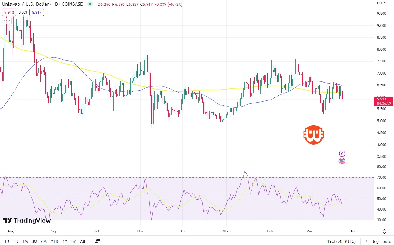 Az UNI árfolyammozgása tükrözte a fenti megfigyeléseket. A cikk írásakor 5,92 dolláron cserélt gazdát, miután az elmúlt 24 órában némi csökkenést mutatott.