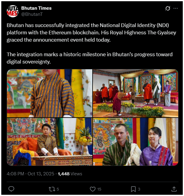 Bhután történelmi lépést tett a digitális jövő felé: nemzeti digitális személyazonosító (NDI) rendszerét az Ethereum blokkláncra migrálta, ezzel új szintre emelve az átláthatóságot és biztonságot.
