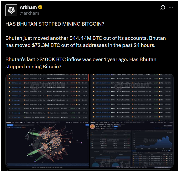Bhután Bitcoin-stratégiája ismét a figyelem középpontjába került, miután rövid időn belül jelentős mennyiségű BTC hagyta el az ország ismert tárcáit.