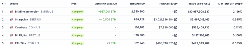 A Bit Digital jelenleg a harmadik legnagyobb vállalati ETH-tartalékos, mintegy 120.000 ETH-val, ami körülbelül 494 millió dollár értékű.