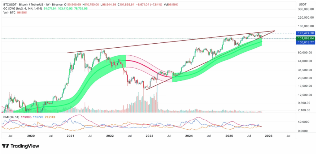 Közben a DMI-mutató is szűkülő lendületet mutat, ami arra utal, hogy egy nagyobb irányváltás küszöbén állunk: egy kitörés 123.000 felett vagy egy letörés 98.000 alatt meghatározhatja a Bitcoin következő hónapjainak trendjét.