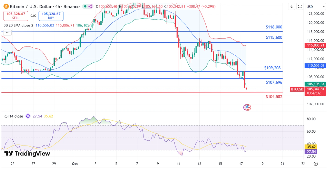 Amennyiben a 104.582 dolláros zóna elesik, a 100.000 dollár alatti régió is megnyílhat, míg egy hirtelen visszapattanás 109.000 dollár fölé rövid távú megkönnyebbülést hozhat.