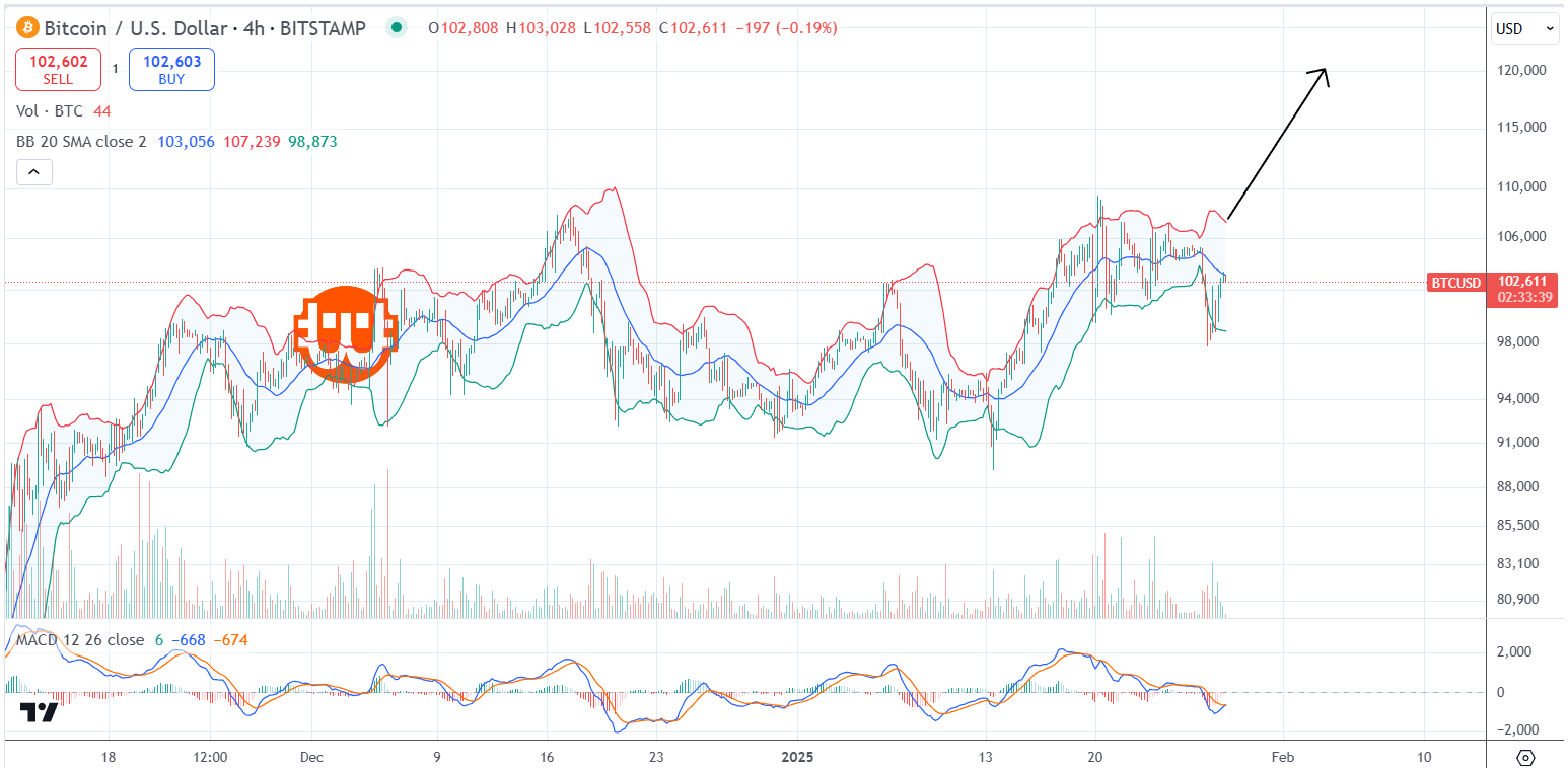 Ha a Bitcoin (BTC) árfolyama tükrözi a korábbi kitörést, akkor egy új, 120.000 dollár közeli ATH-ra számíthatunk, valahol 2025 február első két hetében.