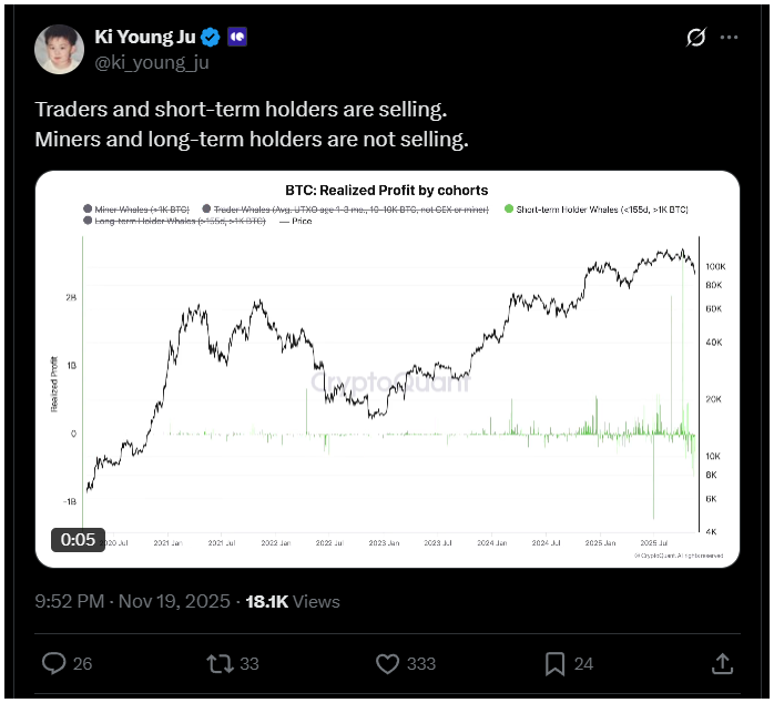 A CryptoQuant friss adatai szerint a rövid távú spekulánsok és a retail befektetők már napok óta kapitulálnak — öntik a piacra a BTC-t.