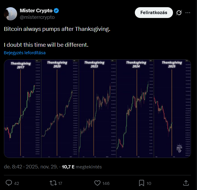 Szerinte a jelenlegi árak nem tükrözik a javuló makró-várakozásokat, és a helyzet nagyon hasonlít a 2020-as COVID-összeomláshoz, amikor a piac túltolta a félelmet, aztán brutálisan visszapattant.