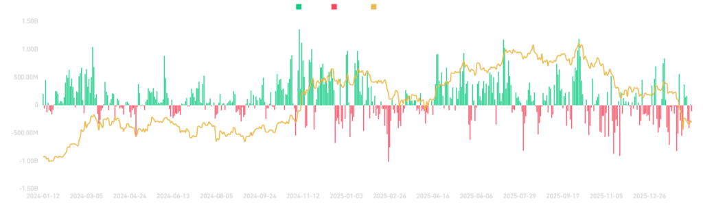 Egy meglepő mutató azonban felkeltette a piac figyelmét: a Bitcoin spot ETF-ekbe érkező tőkebeáramlás. Az esés mögött úgy tűnik, mélyebb dinamika rajzolódik ki.