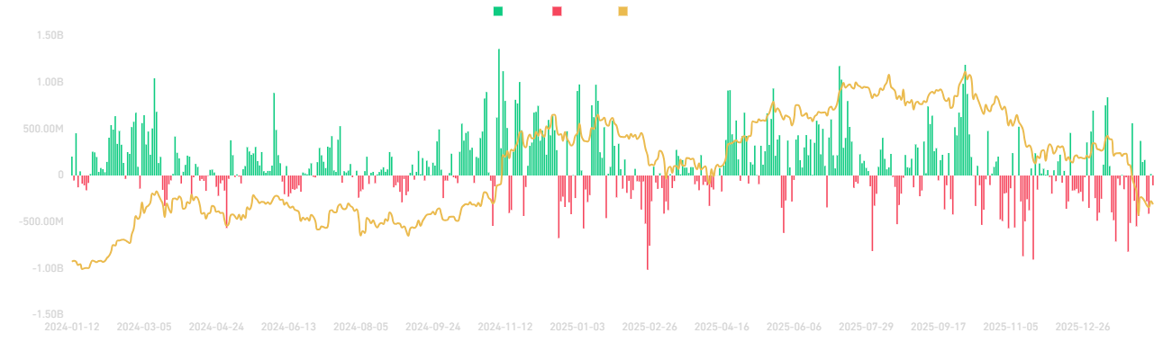 Egy meglepő mutató azonban felkeltette a piac figyelmét: a Bitcoin spot ETF-ekbe érkező tőkebeáramlás. Az esés mögött úgy tűnik, mélyebb dinamika rajzolódik ki.