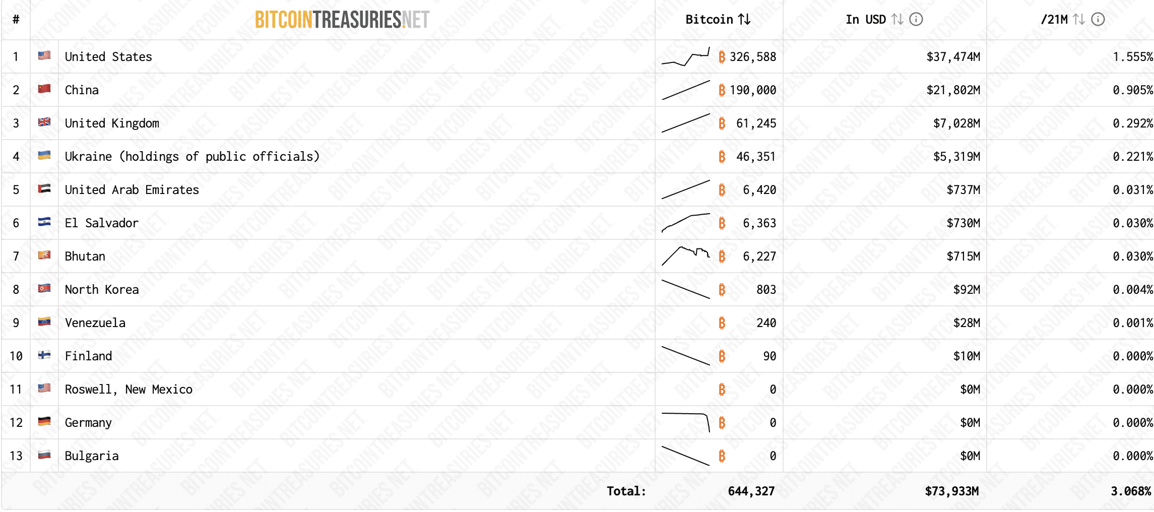 Országok bitcoin-vagyona