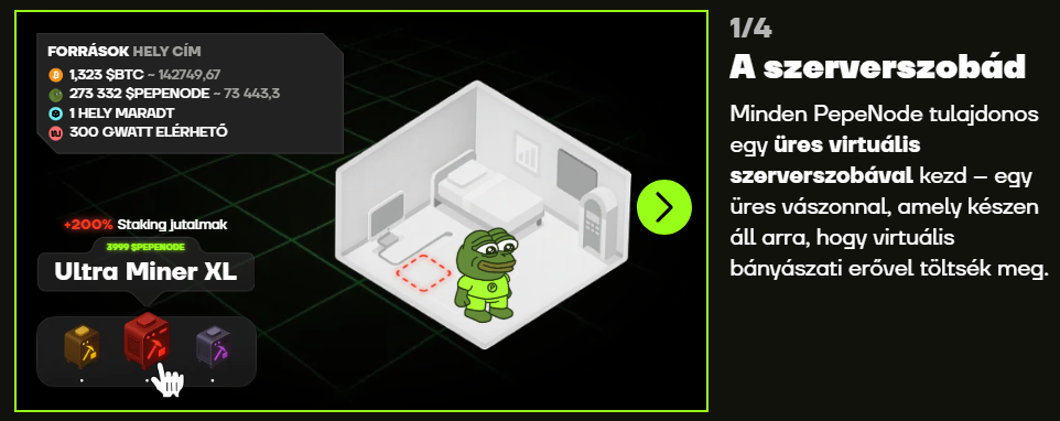 A PepeNode egyedi narratívát kínál: „mém coin bányászati” tokenként pozicionálja magát. A projekt a $PEPE ökoszisztémához kapcsolódik, és hosszú távú részvételt jutalmaz, nem csak rövid távú kereskedést.