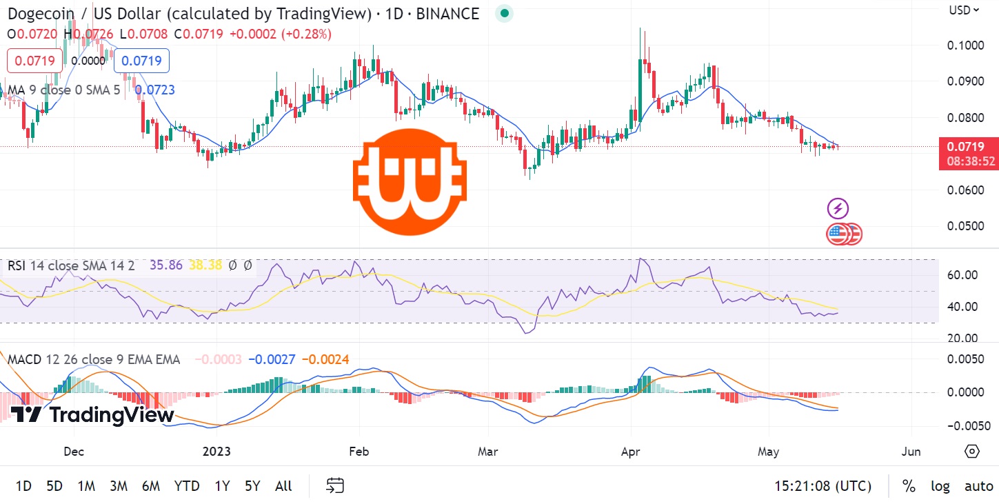 A legfrissebb Dogecoin árelemzés medvés átvételt mutat, mivel a DOGE árfolyama 0,07206 dollárra esett 0,98%-os veszteséggel az elmúlt 24 órában.